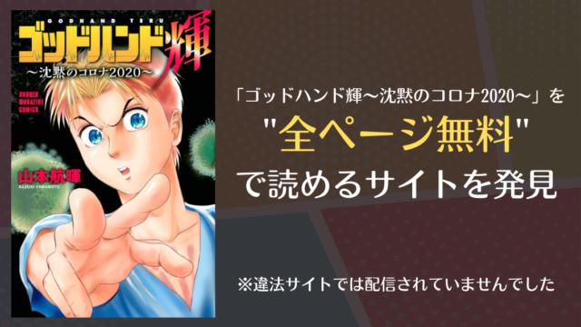 漫画(漫画バンク・rawで未配信) ゴッドハンド輝~沈黙のコロナ2020~は漫画バンク・rawにない?無料で読めるサイトを発見! 2023年6月17日 Tomotomo55 https://interconnect.cc/manga/wp-content/uploads/2022/10/Screenshot-2021-07-23_12-29-54-951-1.png info図書館